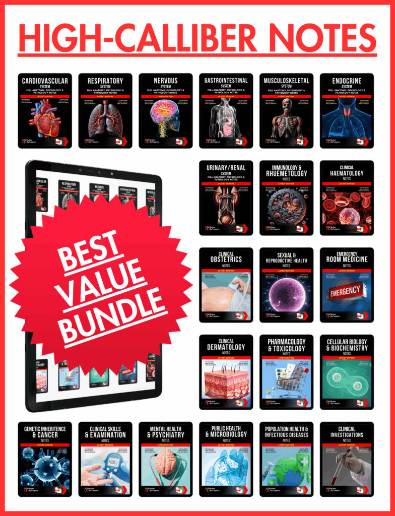 Our Exam Q&A Bundle (included in the Topper Pro Pack) provides over 1600 pages of practice questions. It features comprehensive sets of university-level Multiple-Choice Questions (MCQs) and Short-Answer Questions (SAQs) for 15 key exam subjects. Detailed model answers are provided immediately after each quiz to help you revise, reassess, and improve retention. It’s designed to make you exam-ready by simulating real exam conditions and reinforcing your knowledge.